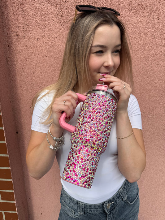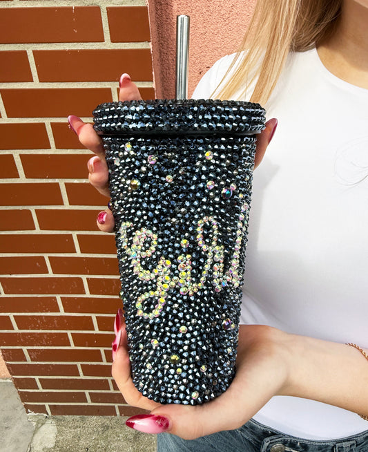 Ręcznie zdobione kryształkami kubki termiczne z możliwością personalizacji.