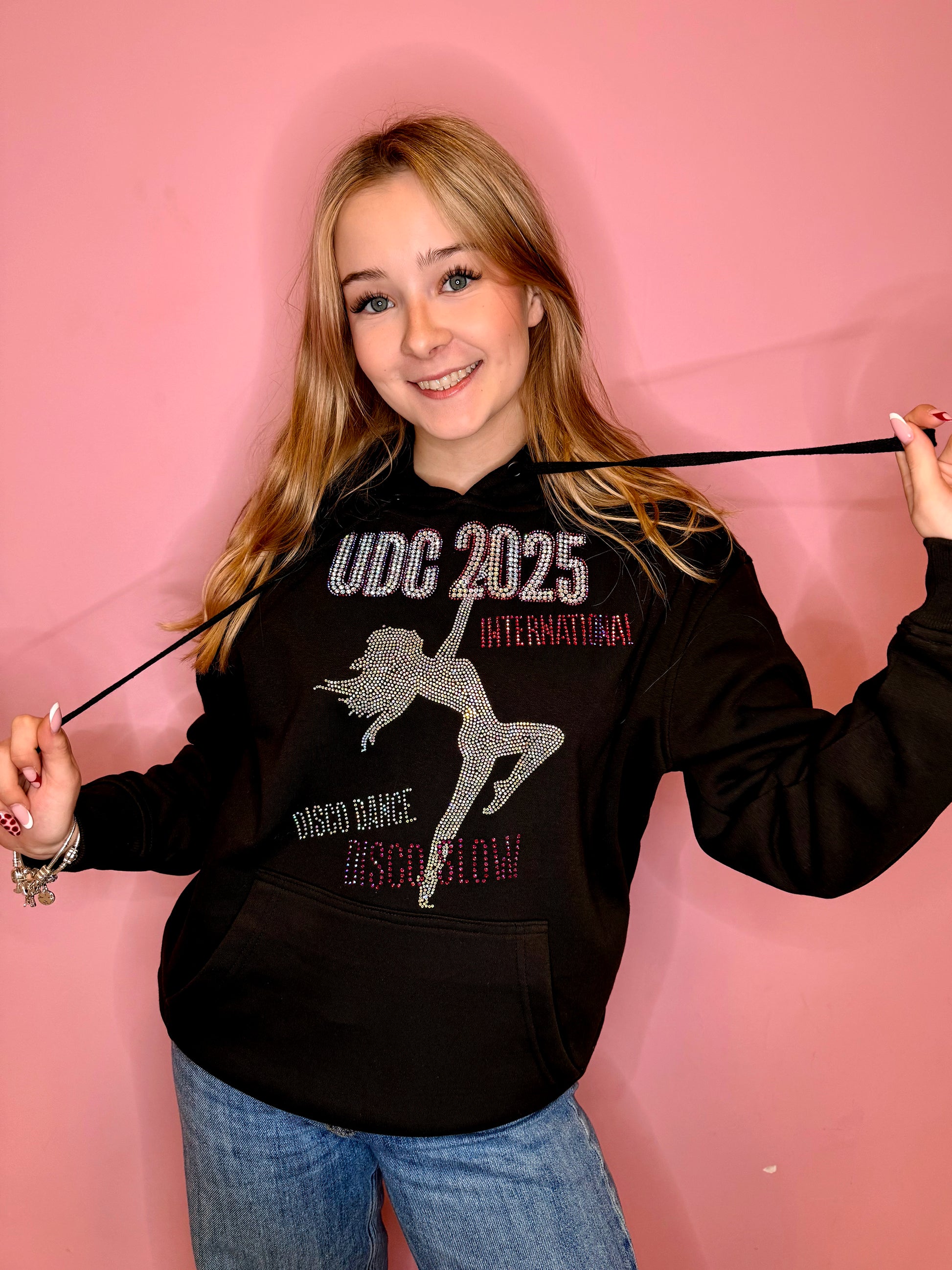 Black hoodie with crystal UDC 2025 logo